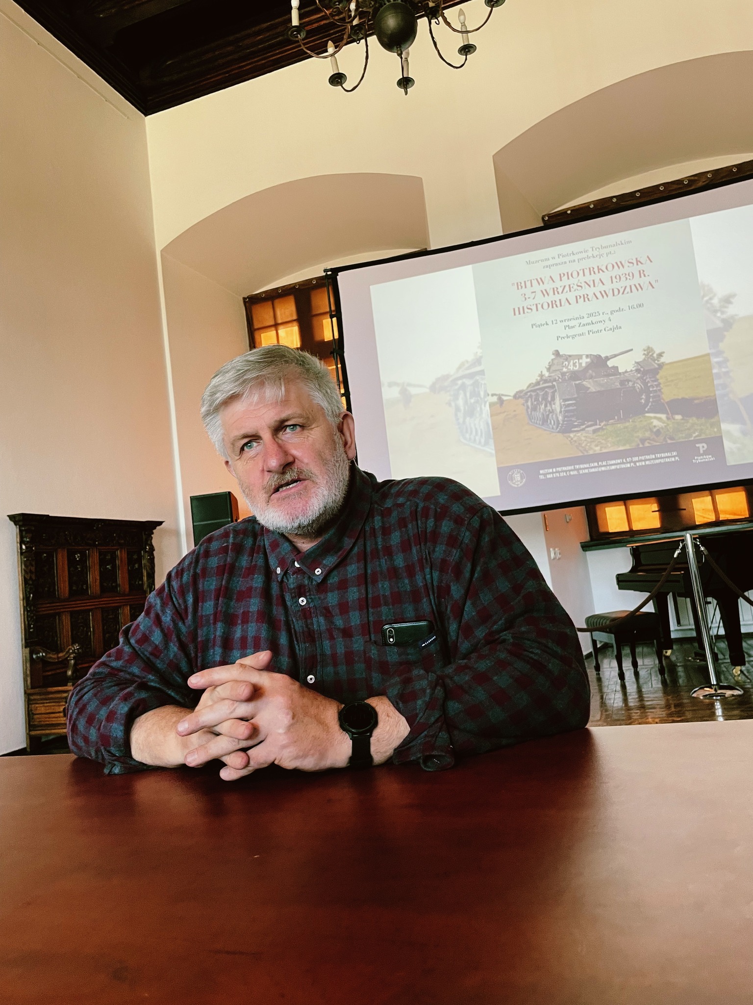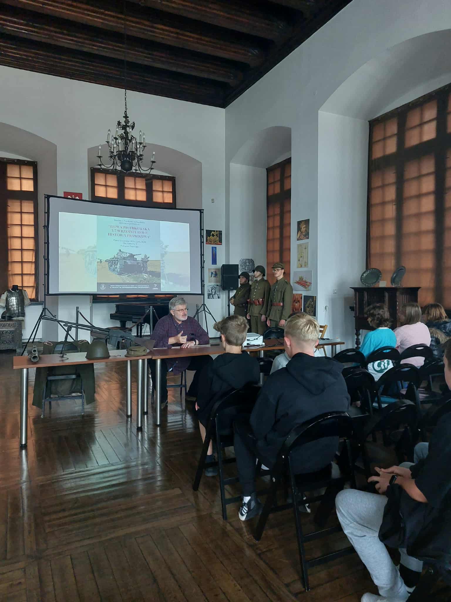 Prowadzący przybliżył tło historyczne, najważniejsze wydarzenia oraz znaczenie Bitwy Piotrkowskiej w kontekście obrony Polski w 1939 roku.