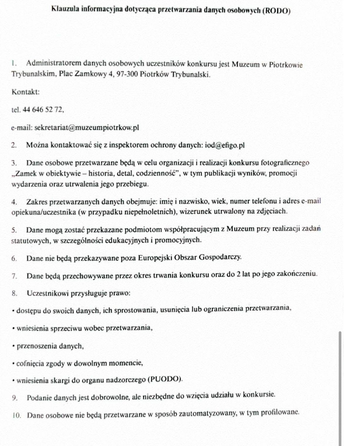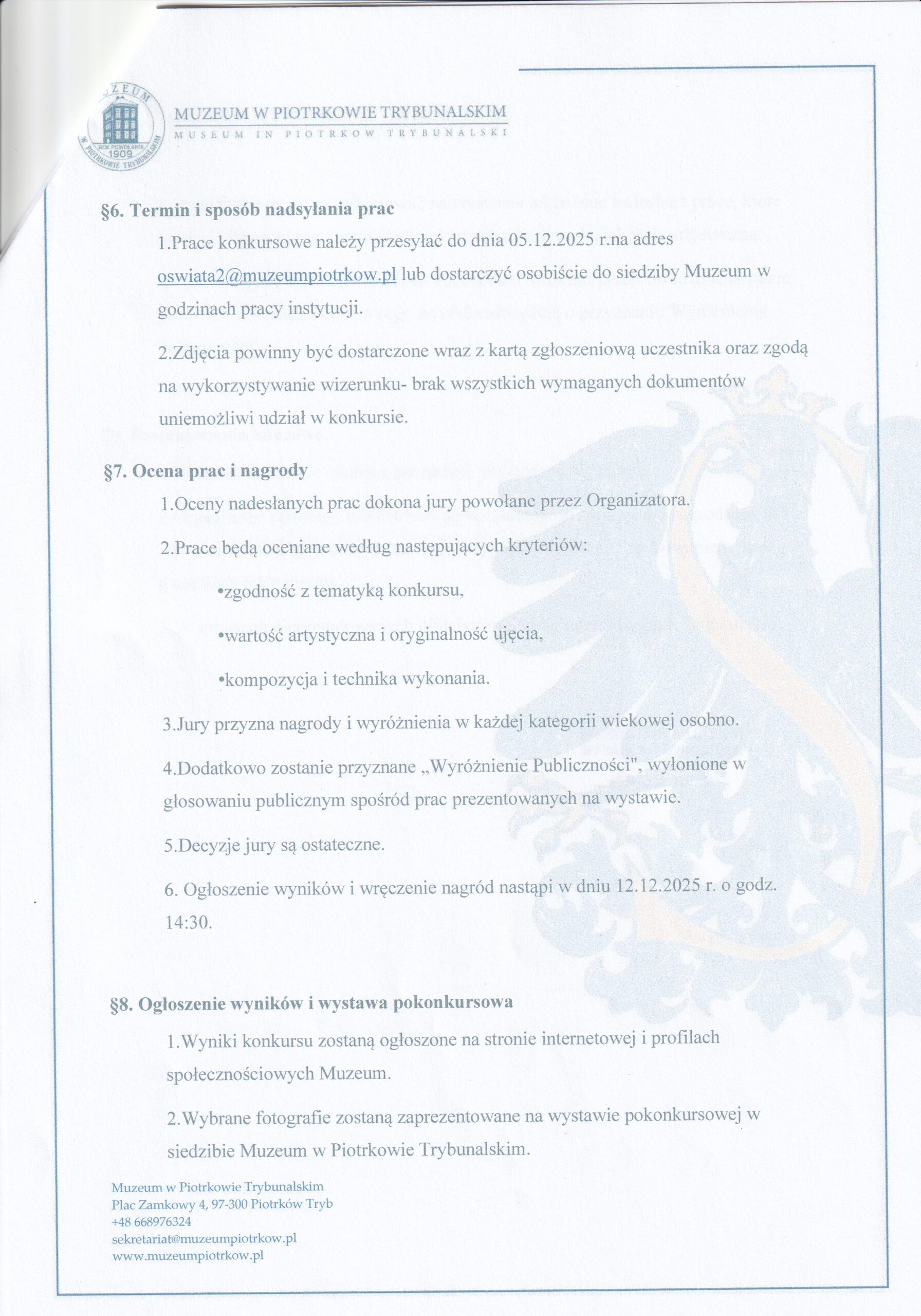lub dostarczyć osobiście do siedziby Muzeum w Piotrkowie Trybunalskim w godzinach jego pracy.
